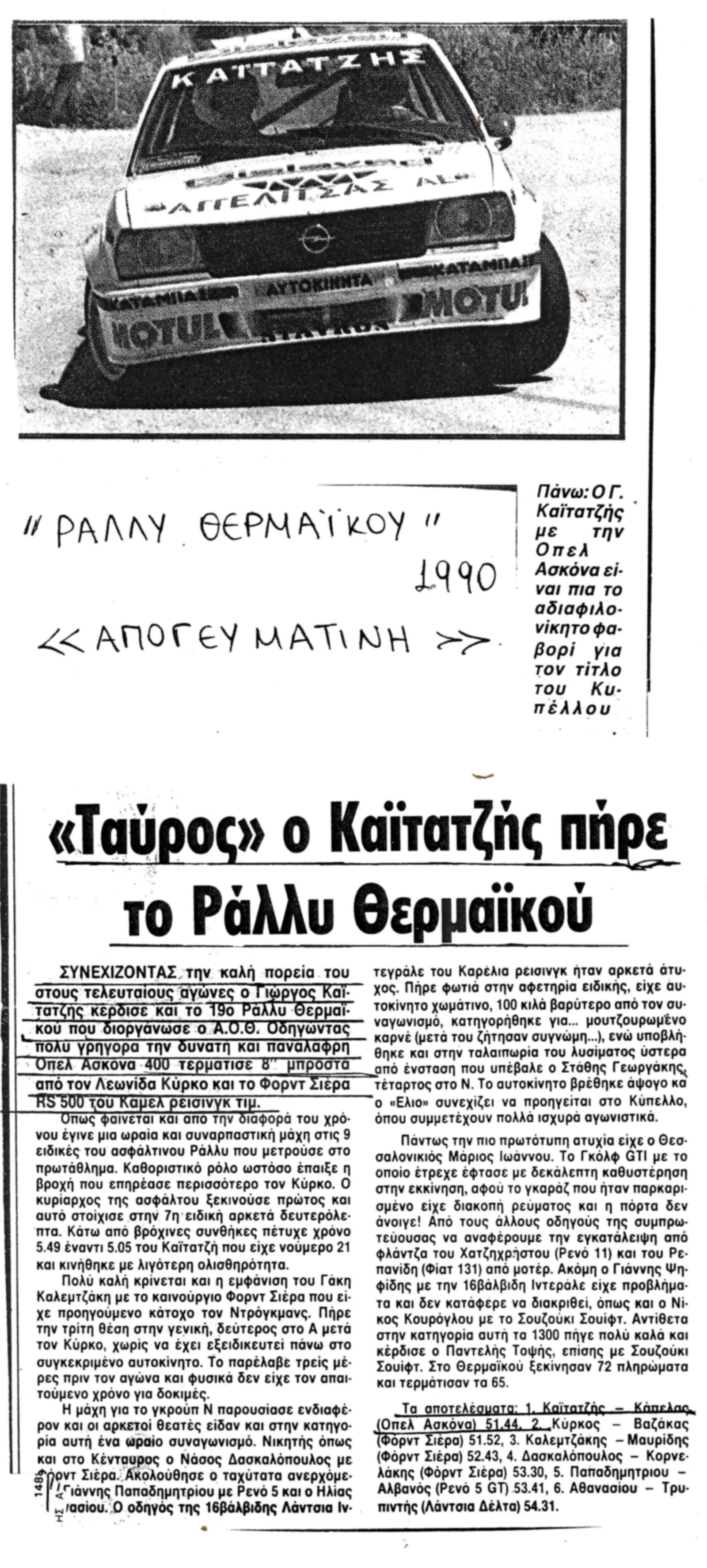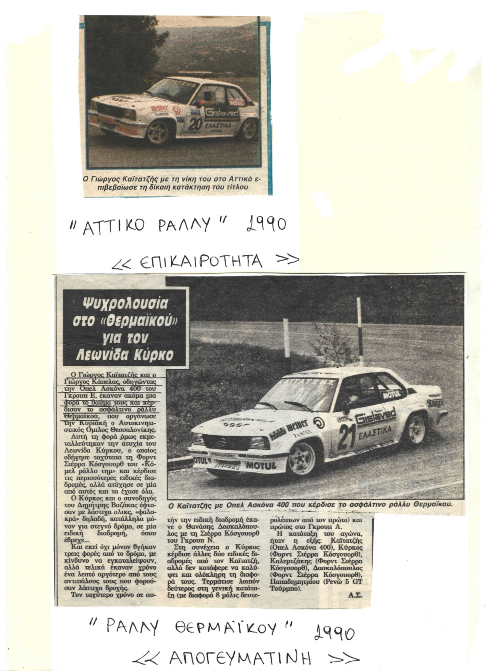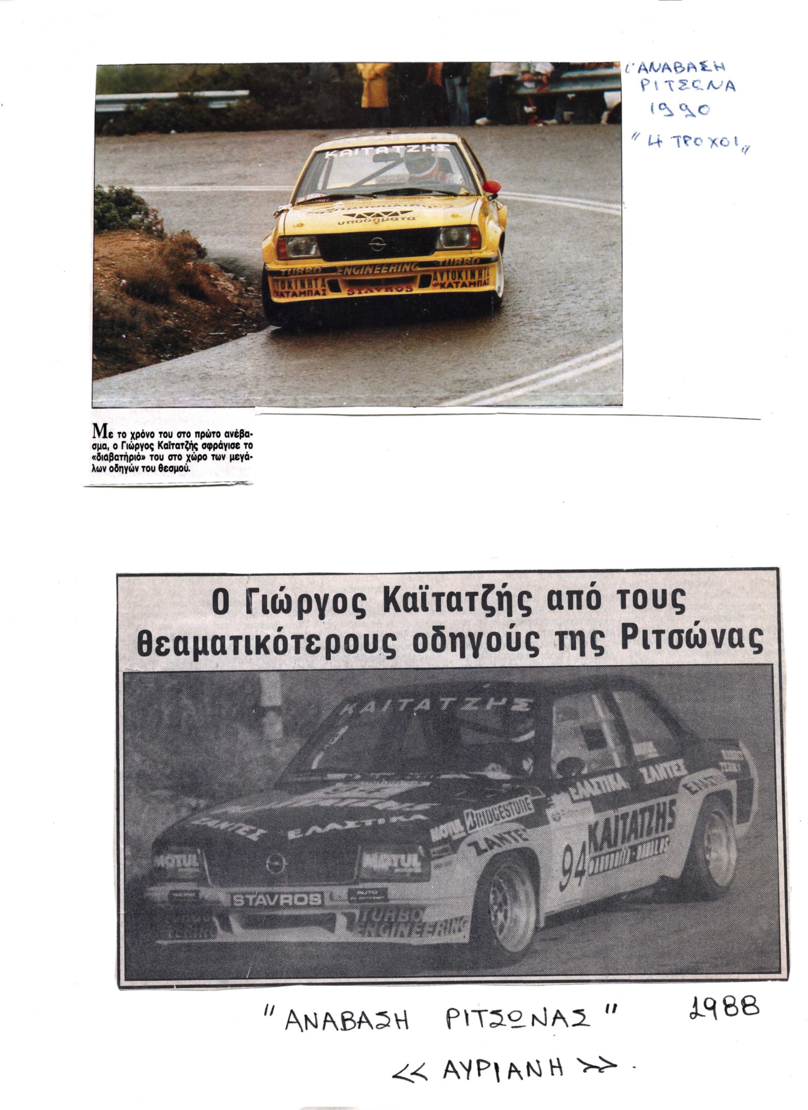 Ξεκινώντας o Γιώργος Καϊτατζής με ενα Opel Kadett GTE και συνεχίζοντας με Opel Ascona Group A,Opel Ascona Group E,Opel Ascona 400 Εργοστασιακή του Valter Rell και συνεχίζοντας με ενα